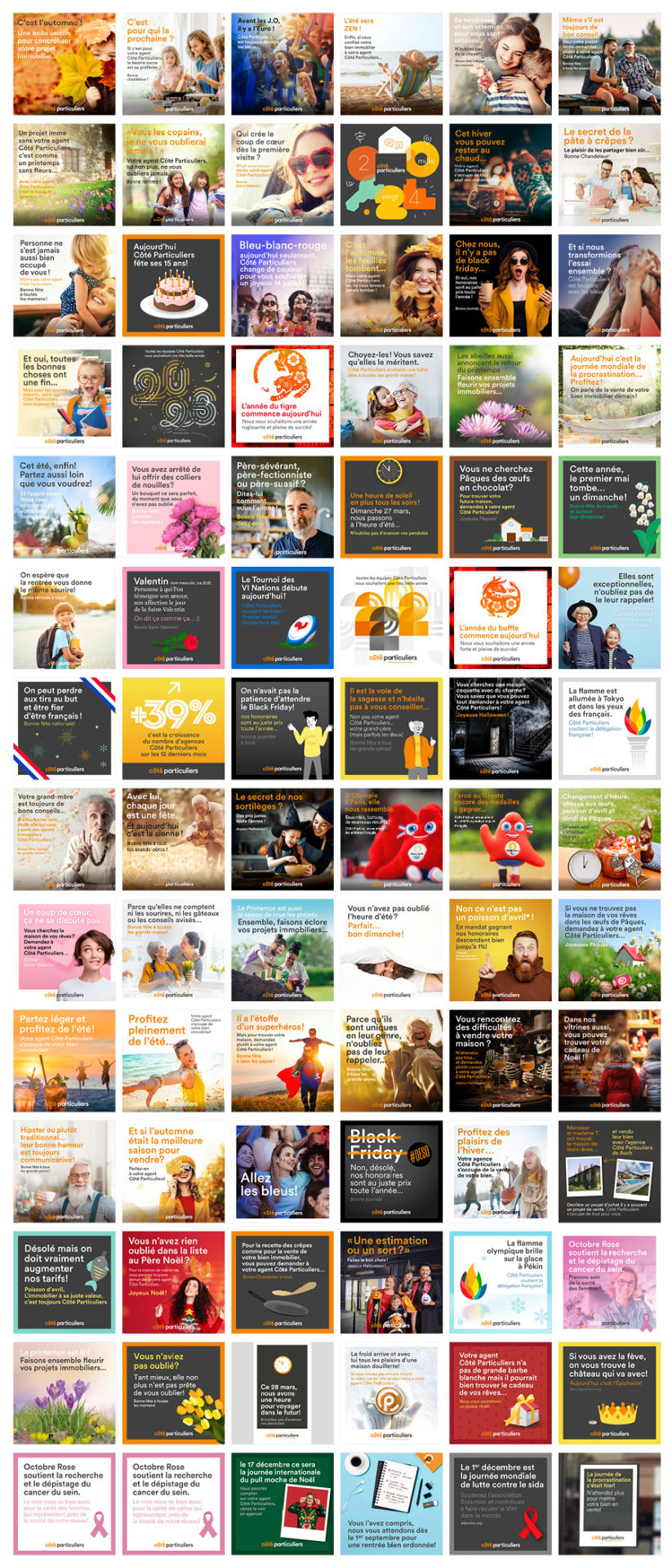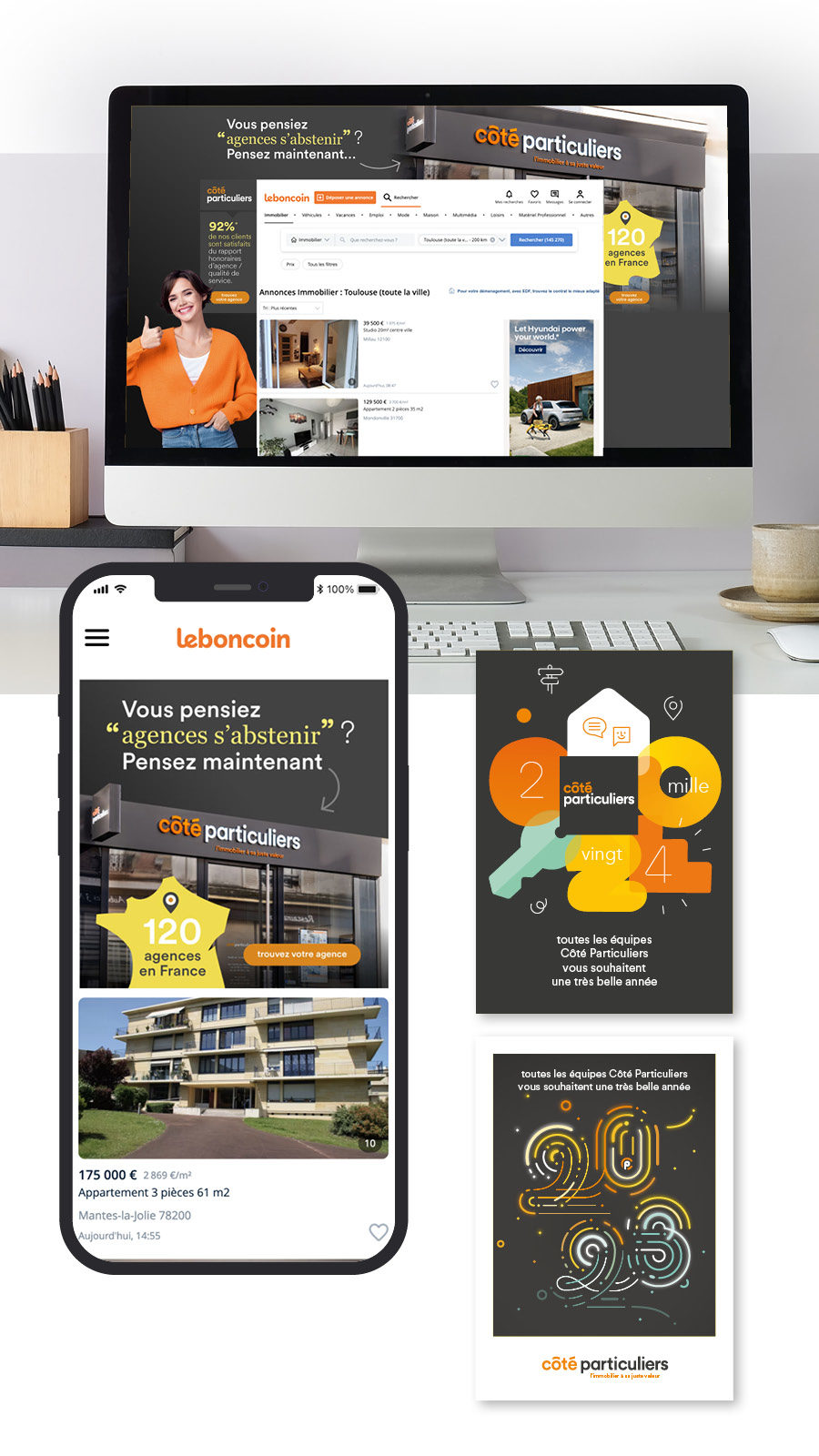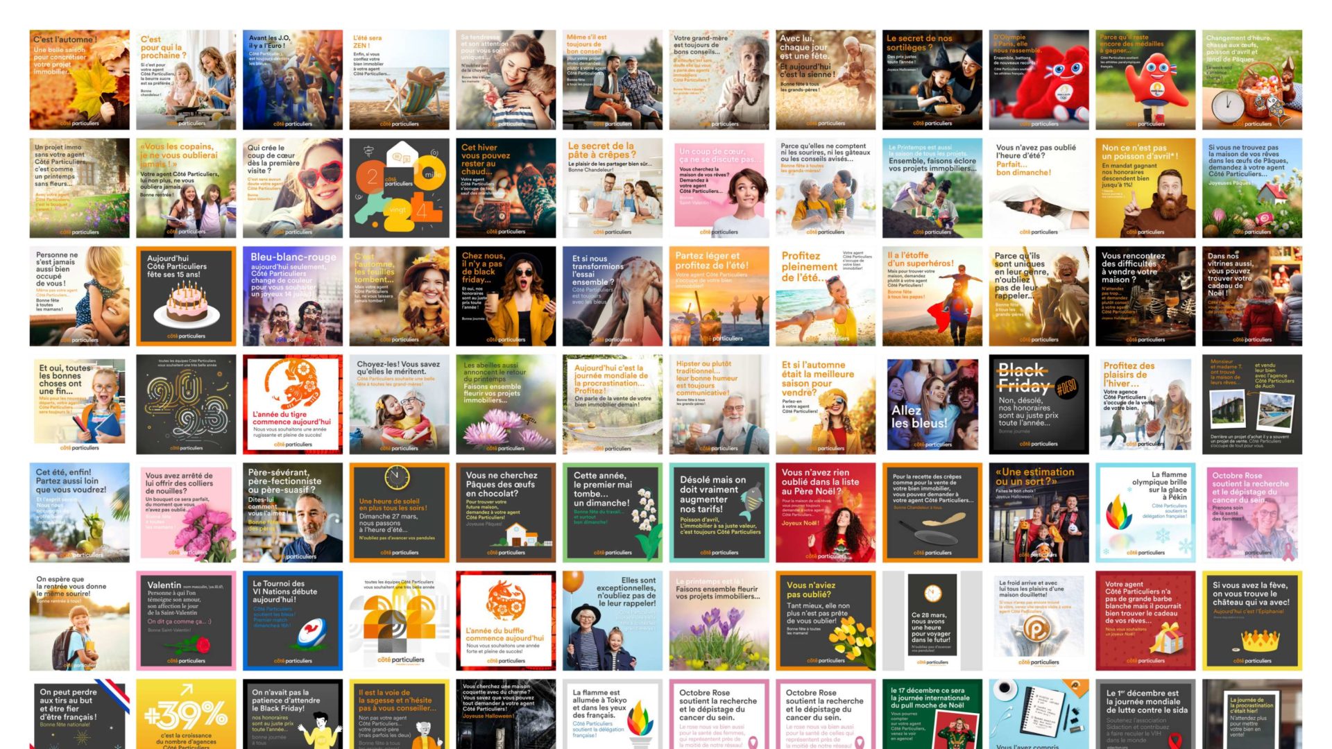 En 2019, le réseau d’agences immobilières Côté Particuliers demande à un expert de réécrire les fondamentaux de la marque : Julien Mercier interroge toute l’équipe, les agents, les clients, puis il extrait l’essentiel et synthétise le tout en une plateforme de marque. Sur son invitation Côté Particuliers commande à Formo une nouvelle identité, c’est le début de 6 ans de collaboration étroite, jusqu’au rachat complet de l’enseigne par le groupe Human et l’internalisation des services de communication.
