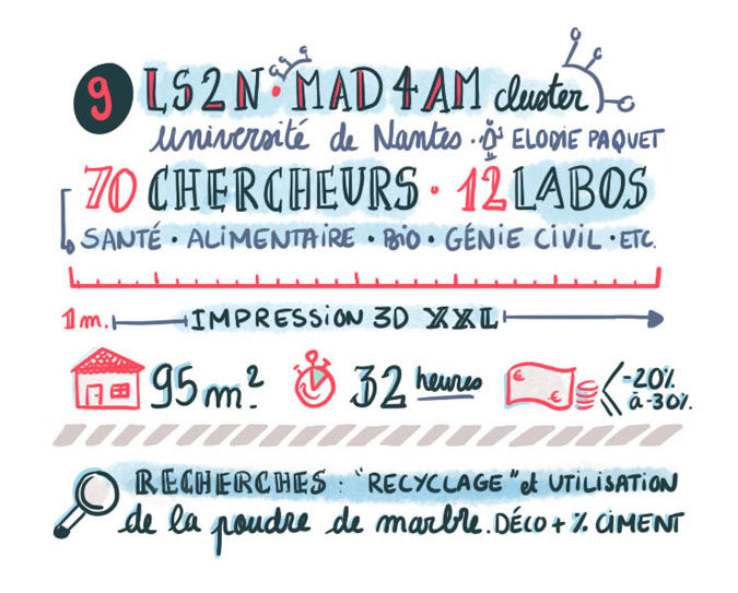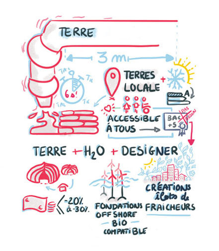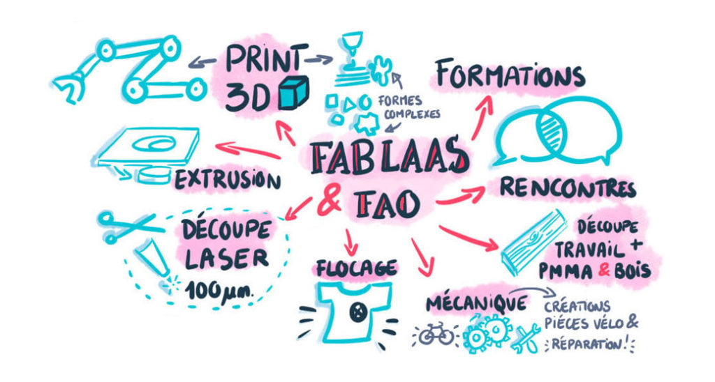 Le résultat : une captation graphique live des présentations des procédures et applications de la fabrication additive résumée dans une synthèse visuelle.